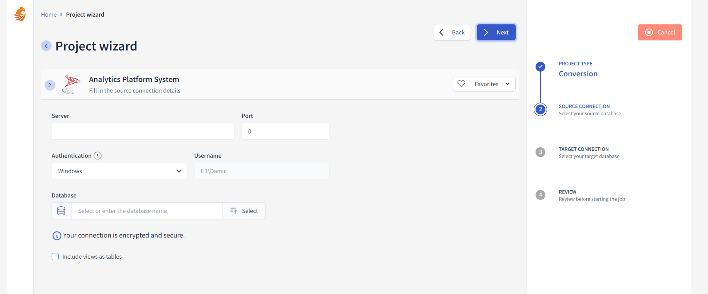 Input the fully qualified domain name or IP address of the Analytics Platform System server you intend to connect to.