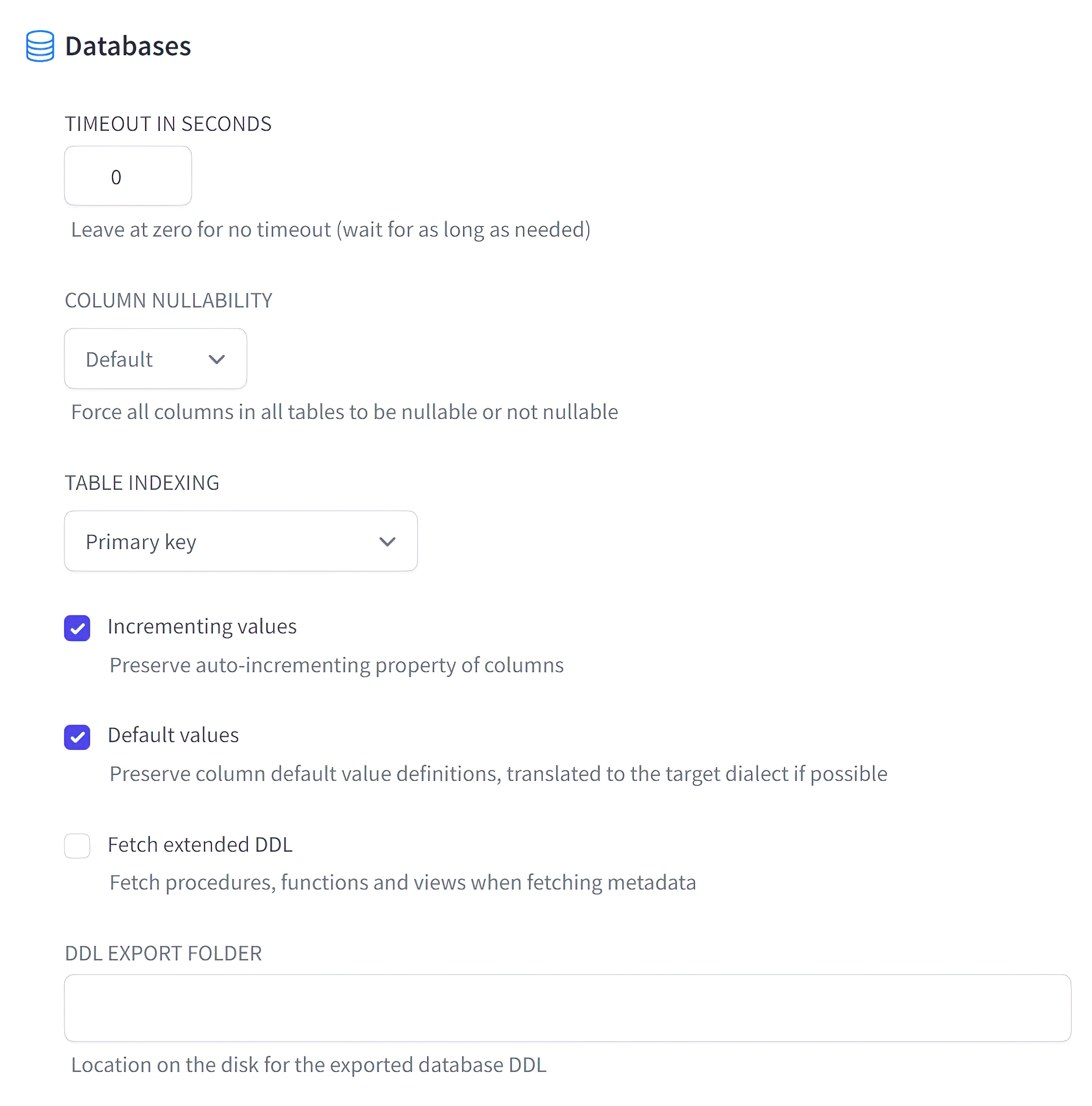 Primary Key The primary key indexing option ensures that each row in the table is unique and not null, optimizing data retrieval based on the primary key column.